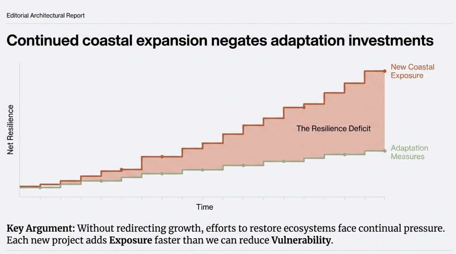 Each new coastal project adds exposure, potentially offsetting gains from adaptation investments elsewhere.