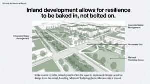 a) A fundamental shift is required to decouple growth from vulnerable coastal zones and incentivize development of resilient inland centres.
